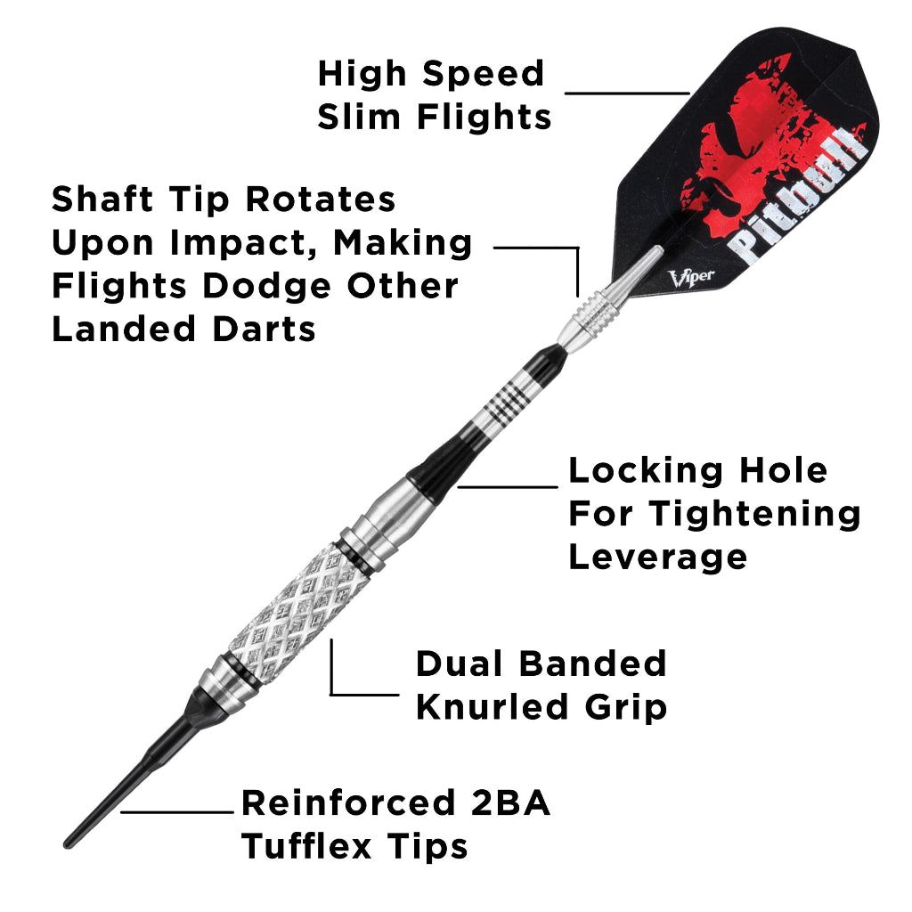 Pitbull 90% Tungsten Soft Tip Darts Diamond Cut and Shark Fin Barrel 18 Grams by Viper 21-2005-18